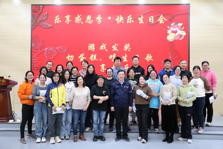 工会在微纳大厦103 报告厅举办了一场温馨而充满乐趣的“集体生日会” 活动,为辛勤耕耘在教育科研一线的教职工们送上了一份特别的惊喜与感动。学院工会主席刘军华、副主席赵前程和崔小欣、院长助理涂成、工会委员会代表及7-12 月份生日的教师代表等近40 人齐聚一堂,在感恩季的繁忙工作中获得了片刻的放松与欢愉,大家在欢声笑语中相互交流,进一步加深了彼此之间的了解与友谊。