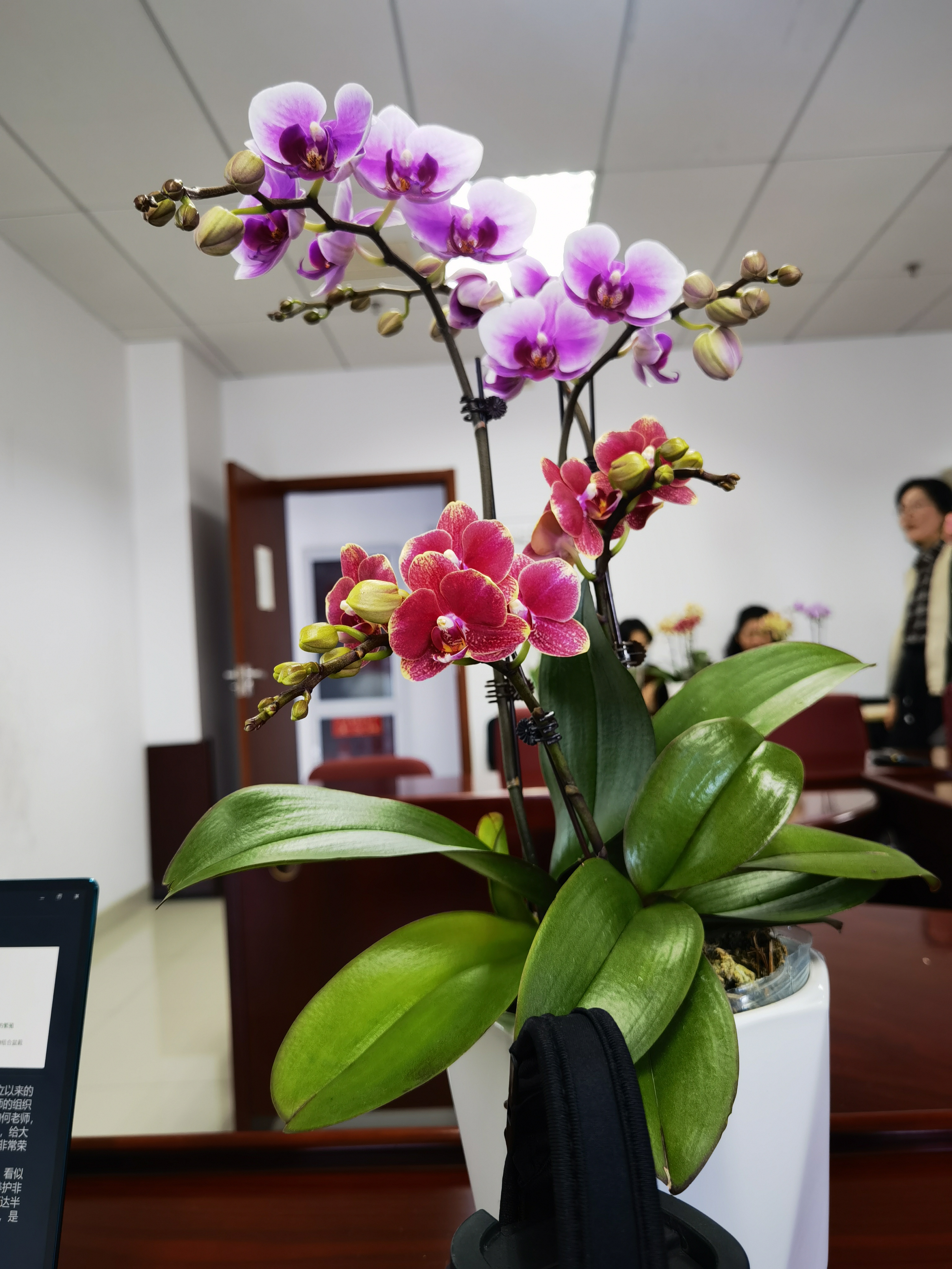 活动现场,邀请学院工会女工委员金莲玉老师为大家讲解蝴蝶兰日常栽培、养护、病虫害防治、繁殖以及与其他植物组合栽培技巧,并为大家准备了明玉、公主、亚哥等不同品类供大家挑选搭配。活动中,各位女职工热情高涨,大家充分发挥创造力,通过培土、栽种、修剪、装饰等步骤,一盆盆细致精美的蝴蝶兰盆栽诞生了,置身蝴蝶兰花海,大家感受到沁人心脾的芬芳。