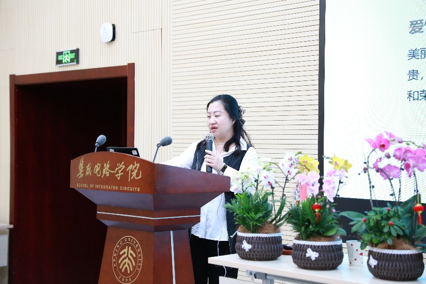 中午12:30,随着主持人工会组织委员韩临老师轻松幽默的欢迎词拉开了活动的序幕,真诚的话语让整个报告厅顿时充满了温暖和喜悦。随后,女工委员金莲玉老师用精心准备的PPT 为大家揭开了蝴蝶兰神秘而又迷人的面纱—— 从品种分类到养护技巧,再到如何巧妙地将其与其他植物搭配,每一个细节都透露出对美的追求与对生活的热爱。