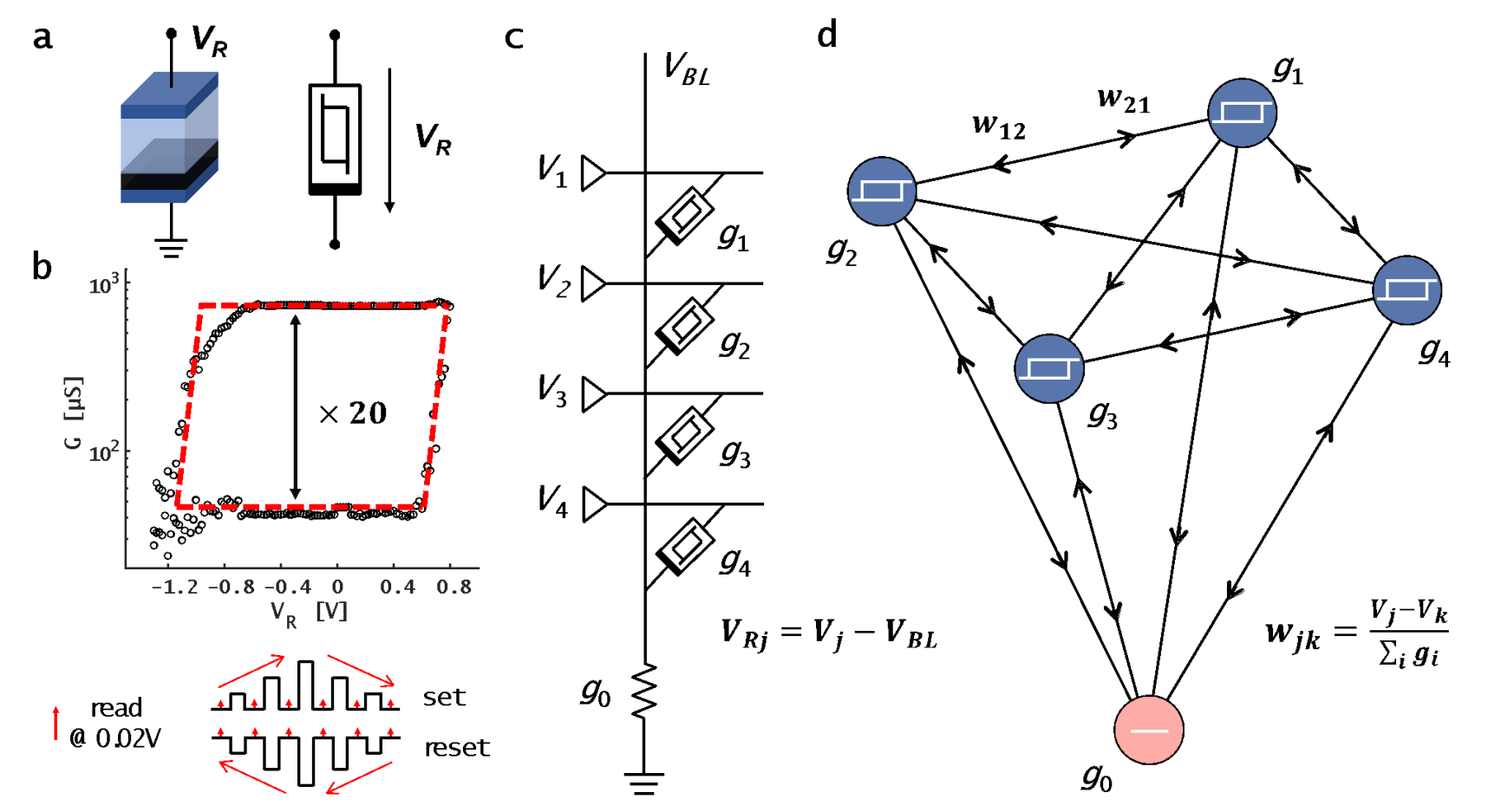 图1. 无源忆阻器阵列的RNN模型