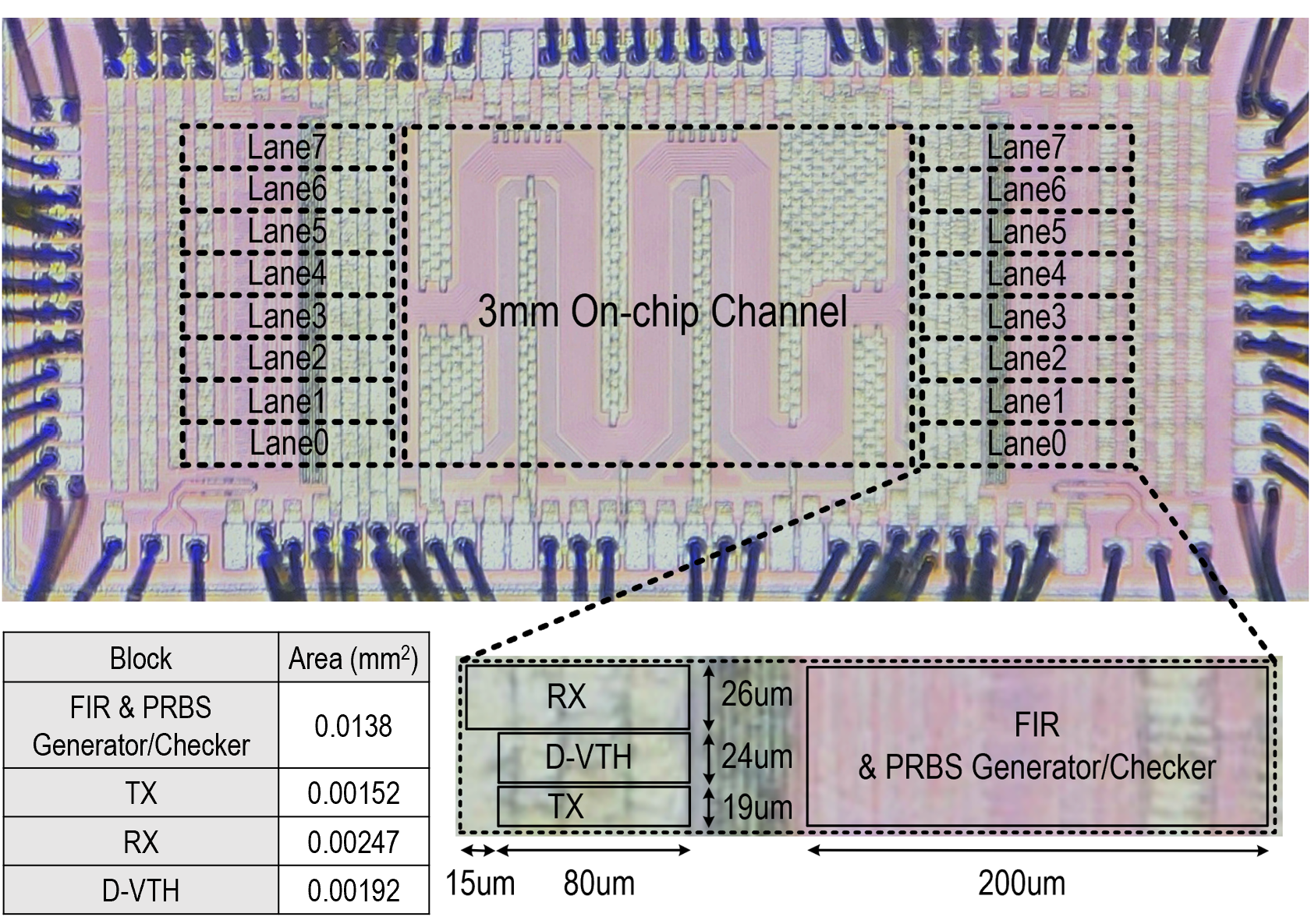 该工作以“A 64Gb/s/wire 10.5Tb/s/mm/layer Single-Ended Simultaneous Bi-Directional Transceiver with Echo and Crosstalk Cancellation for a Die-to-Die Interface in 28nm CMOS”为题发表,第一作者为博士生王知非,通讯作者为盖伟新。