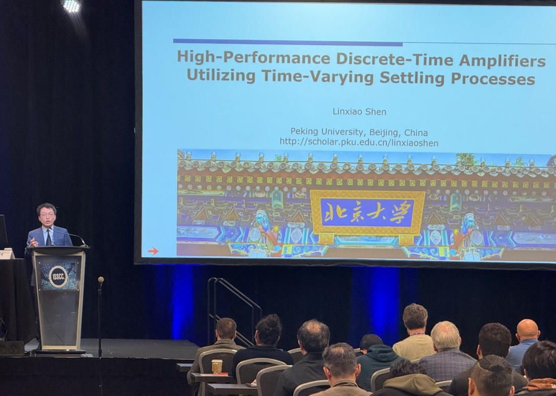 沈林晓研究员受ISSCC 2025 Forum 4 “Highlight of Data-Converter R&D in the Past 5-Years: A Comprehensive Overview”邀请,做题为“High-Performance Discrete-Time Amplifiers Utilizing Time-Varying Settling Processes”的邀请报告。沈林晓回顾了近年来应用于离散时间 ADC 的放大器结构,指出当前其发展方向正从时不变放大过程向时变放大过程转变。通过严谨的数学推导,沈林晓首次揭示了在时变放大过程中,实现最优噪声性能的带宽变化轨迹,即“最优建立过程(optimal settling process)”。此外,还结合多个电路案例展示了逼近最优建立过程的可行电路结构,为该领域研究提供重要参考。
