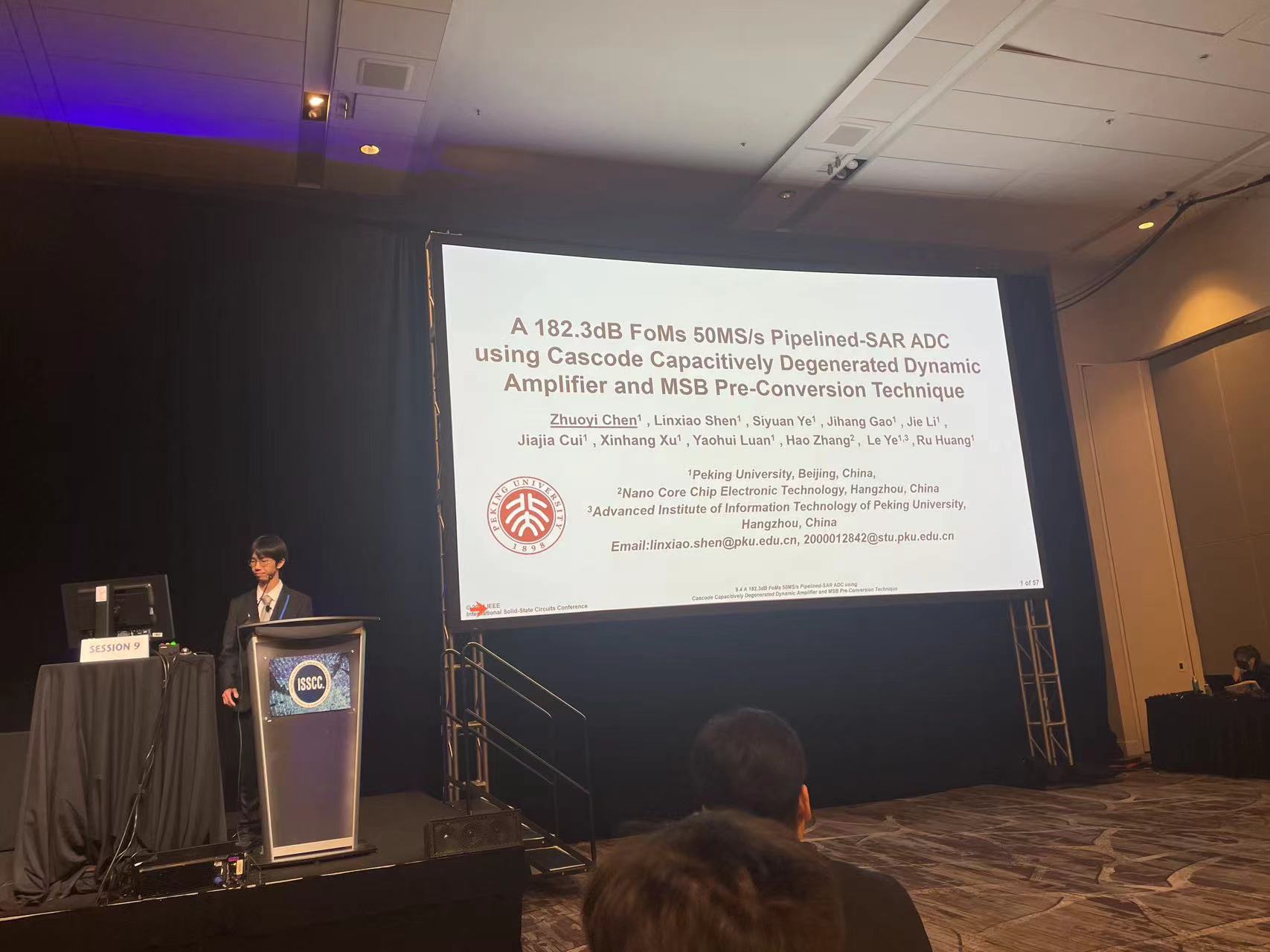 该工作以《基于连续时间逐次逼近型模数转换器的检测跳过技术和先开环后闭环的相关电平抬升技术的2mW, 70.7dB SNDR, 200Msps的流水线逐次逼近型模数转换器芯片》(A 2mW 70.7dB SNDR 200MS/s Pipelined-SAR ADC with Continuous-Time SAR-Assisted Detect-and-Skip and Open-then-Close Correlated Level Shifting)为题,作为模数转换器方向的亮点论文(highlight),发表于今年ISSCC的噪声整形和逐次逼近型模数转换器领域(Session9 Noise Shaping and SAR ADC)分会场,由文章第一作者blh漫画