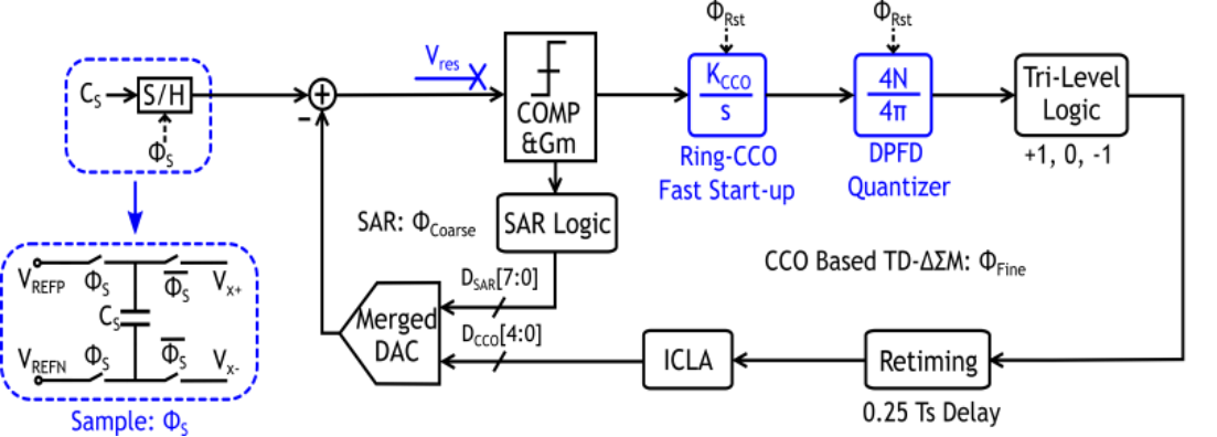 该工作以A 9.7fJ/Conv.-Step Capacitive Sensor Readout Circuit with Incremental Zoomed Time Domain Quantization为题,发表于今年CICC,文章的第一作者是blh漫画
