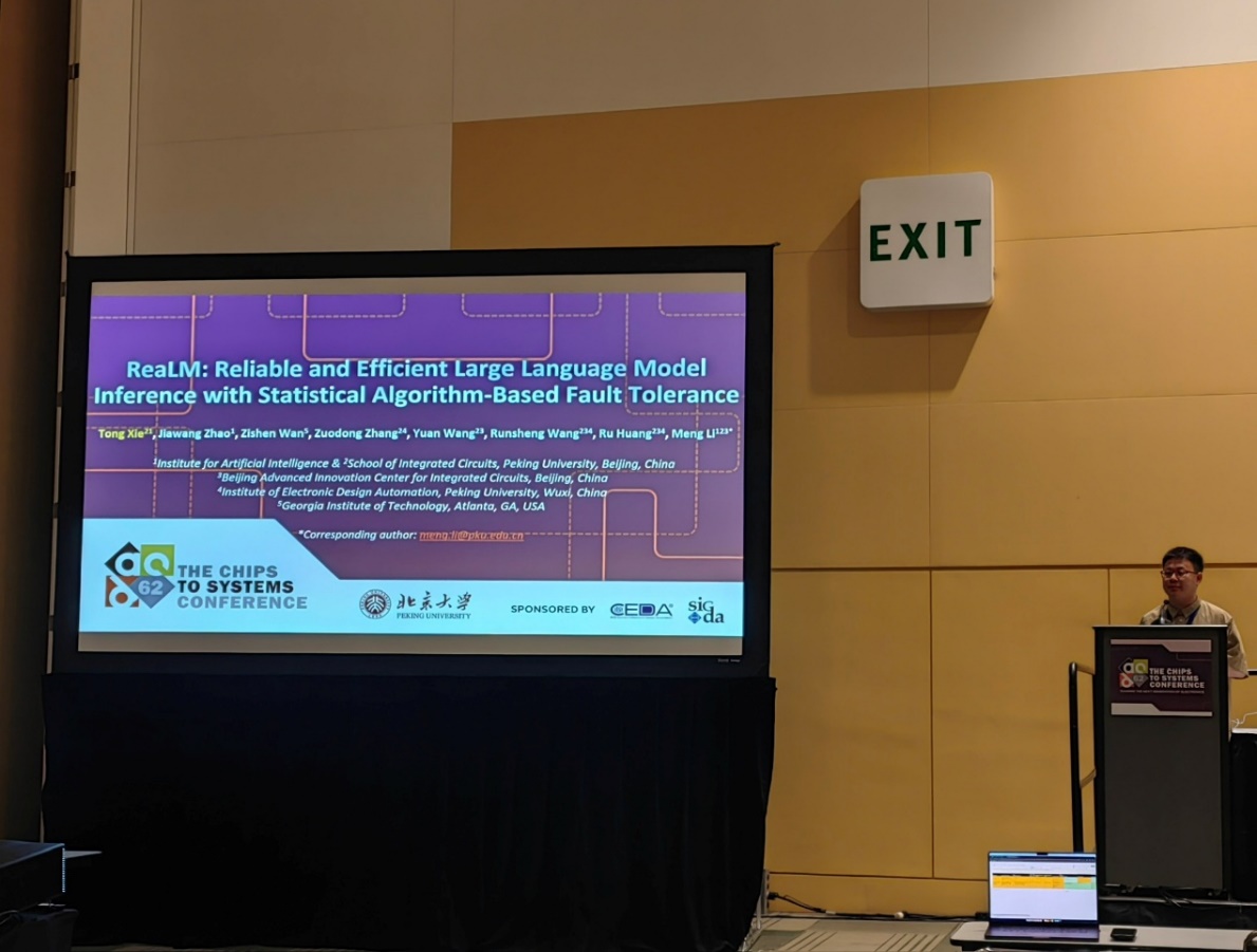 高效大语言模型推理的需求催生了专用加速器的发展。然而由于老化、工艺涨落等因素,这些加速器易发生硬件故障。现有设计通常预留较大的电压裕度或采用基于算法的容错(ABFT)技术来确保大模型推理的正确性。然而并非所有硬件故障都会影响模型输出结果,传统方案因此引入了较高的计算和能耗开销。为实现可靠且高效的大模型推理,李萌研究员-王润声教授团队提出了一种名为ReaLM的算法/电路协同设计框架。该架构首次通过大规模误差注入实验,系统地表征了大模型的容错特性。基于此,该框架提出了一种统计ABFT策略,该策略充分利用大模型的容错特性,仅针对关键错误触发恢复机制,来最大程度避免不必要的纠错开销。此外还设计了动态错误检测电路,以支持低成本的在线错误统计信息的收集。大量实验表明,在仅增加1.42%电路面积和1.79%功耗开销的情况下,ReaLM框架显著提高的大模型的可靠性。与现有方法相比,ReaLM在不同工作电压下均能显著降低纠错成本,并在保证大模型性能的前提下,将系统能效提升高达35.83%。该工作以《ReaLM: Reliable and Efficient Large Language Model Inference with Statiatical Algorithm-Based Fault Tolerance》为题发表(博士生解同为第一作者,李萌研究员为通讯作者)。