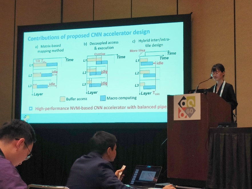 基于非易失性存储器的存内计算神经网络加速器具有权重预存储的特点,通过流水线设计提高存内计算宏单元的时间利用率是提高神经网络加速器系统吞吐量的有效解决方案,然而,现有的流水线架构设计很少从整个系统的角度来关注流水线优化,特别是忽略了缓冲区访问的影响。黄鹏助理教授团队在综合考虑了计算和存储延迟后,分别从算子级、宏单元级和系统级优化了权重映射和流水线方案。实验结果表明提出的优化方案在主流卷积神经网络识别ImageNet数据集的任务上实现了超过3倍的系统吞吐量提升。该工作以《A convolutional neural network accelerator design with weight mapping and pipeline optimization》为题发表(博士生韩丽霞为第一作者,通讯作者是黄鹏助理教授)