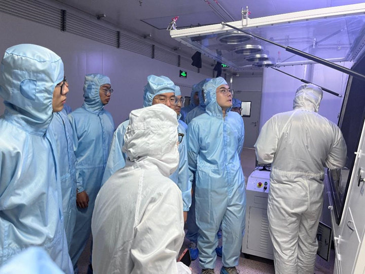 师生前往参观九室超净间,相关工艺老师在科研一线与同学们展开交流讨论。