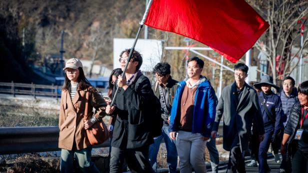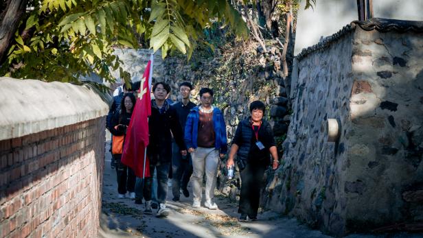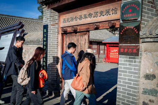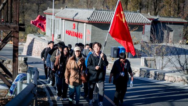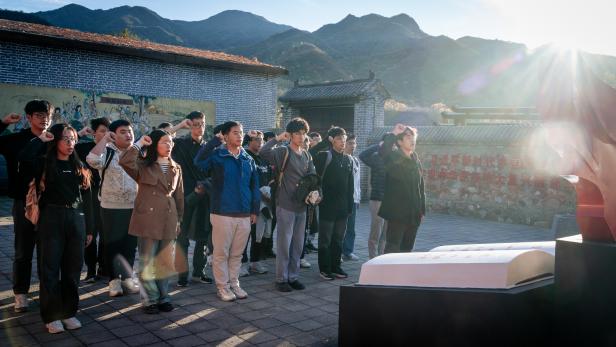 活动伊始,党员团员们在庄严的火炬前集合合影,一同前往高崖口革命烈士纪念碑。在这不朽的丰碑下,党员团员们聆听了当地党史专家关于狼儿峪革命历史的讲解。狼儿峪村作为北京市著名的革命老区,拥有丰富的红色资源和深厚的革命传统。同志们通过参观革命遗址,深刻感受到了革命先烈的英勇事迹和不屈不挠的革命精神。
