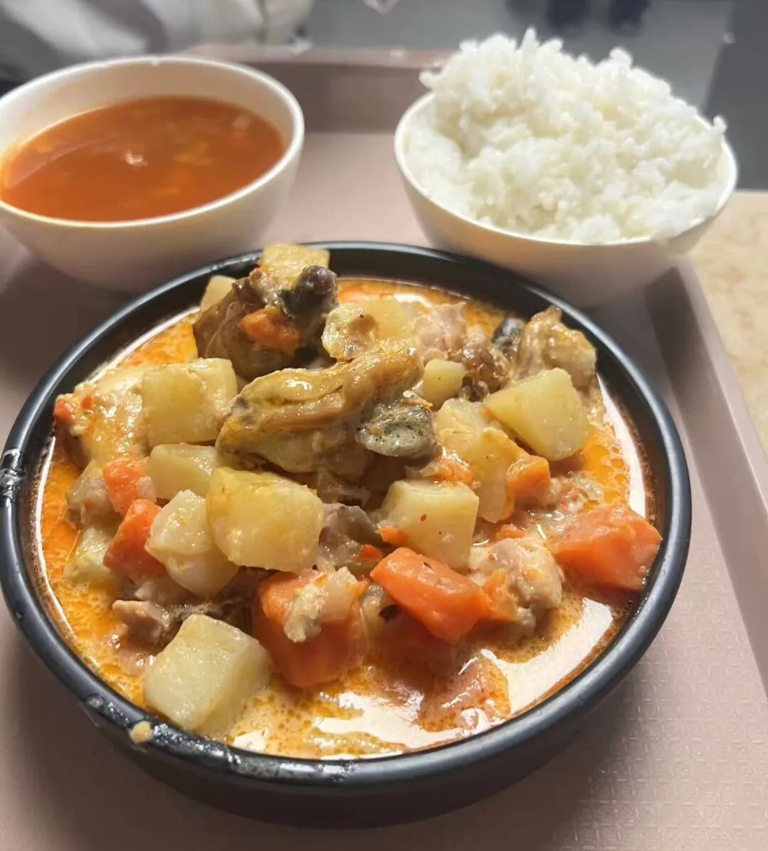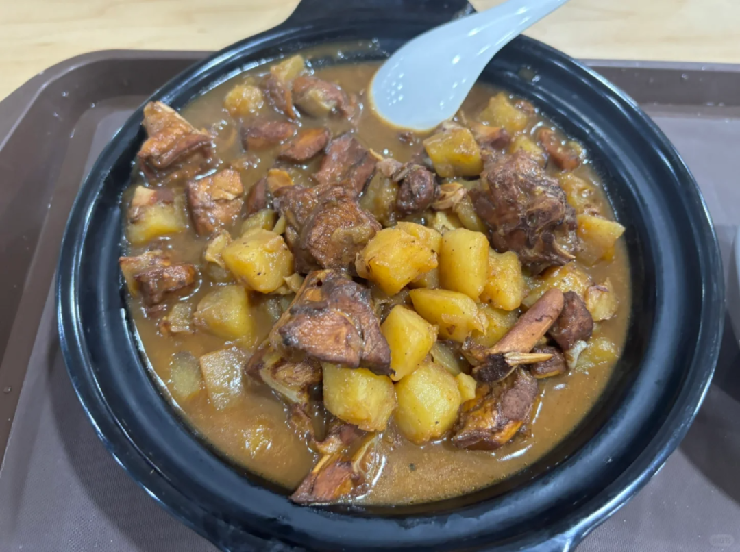 鸡肉炖得酥烂入味,轻轻一抿便在舌尖化开,金黄浓稠的咖喱汁浸润着土豆与胡萝卜,既开胃又下饭。