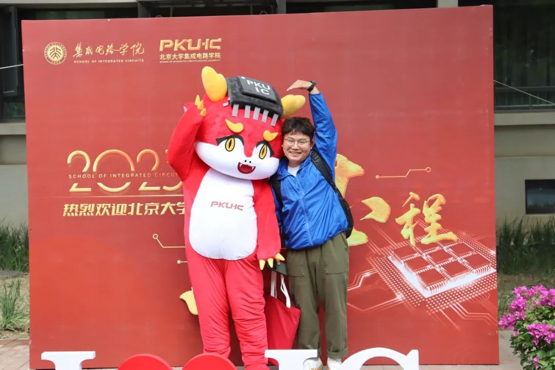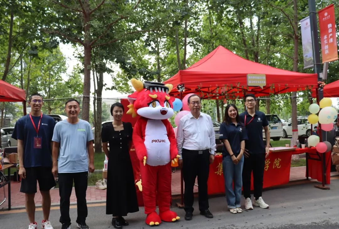 同学们怀着初入燕园的好奇与激动之情,手持学院标志,和吉祥物“莫斯电龙”开心合影,留下了在燕园的记忆。