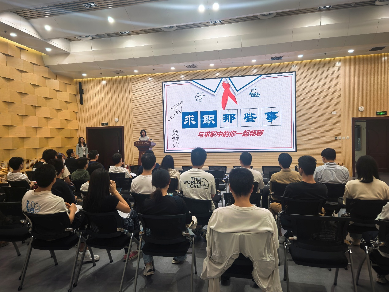 精心组织了一场以“职业启航”为主题的就业指导会。本次会议特邀华为资深HR夏女士与半导体事业部技术专家罗先生亲临现场,为学子们带来了一场“干货满满”的求职备战盛宴。会议由学院党委副书记张舒老师主持。