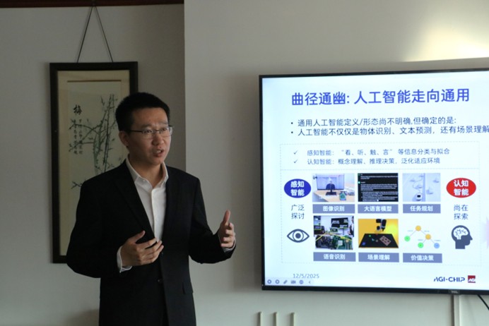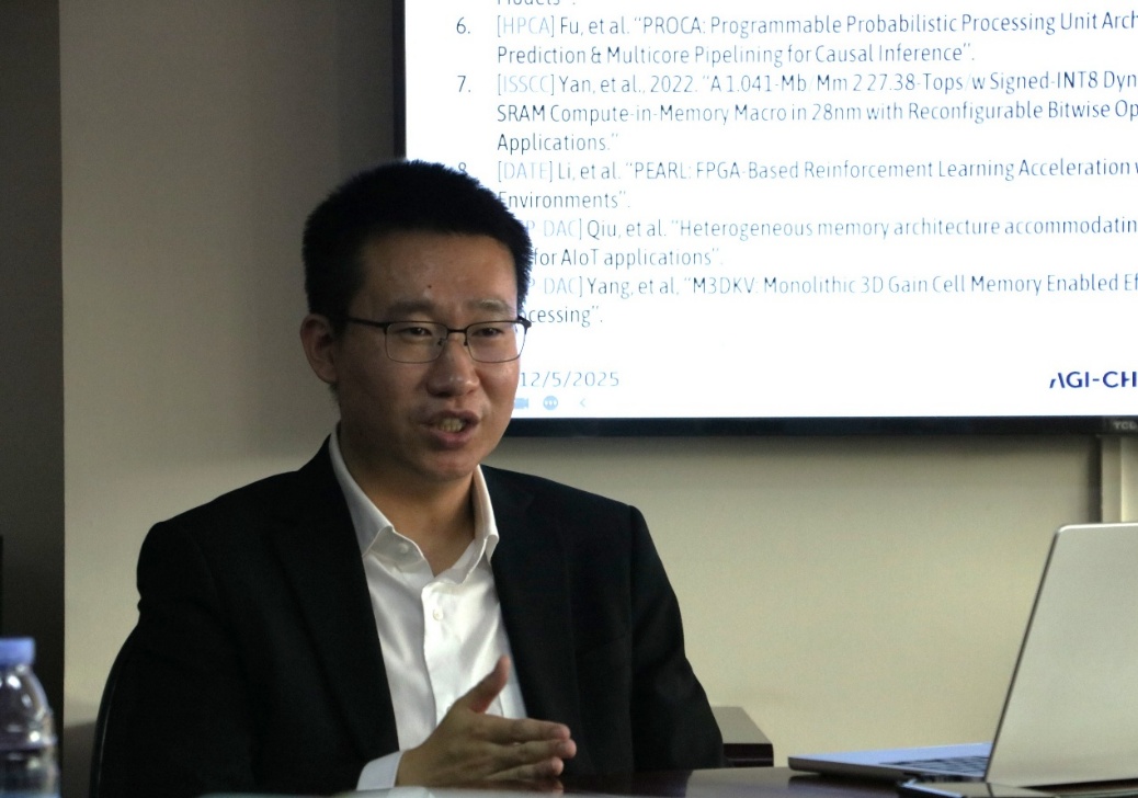青年教师、助理教授燕博南老师作为主讲嘉宾。燕老师结合自身在学术界与产业界的丰富经历,以“面向具身智能的存算一体芯片”为主题,从通用人工智能的愿景出发,深入浅出地拆解了未来计算架构的演进逻辑,并与同学们进行了深入交流。