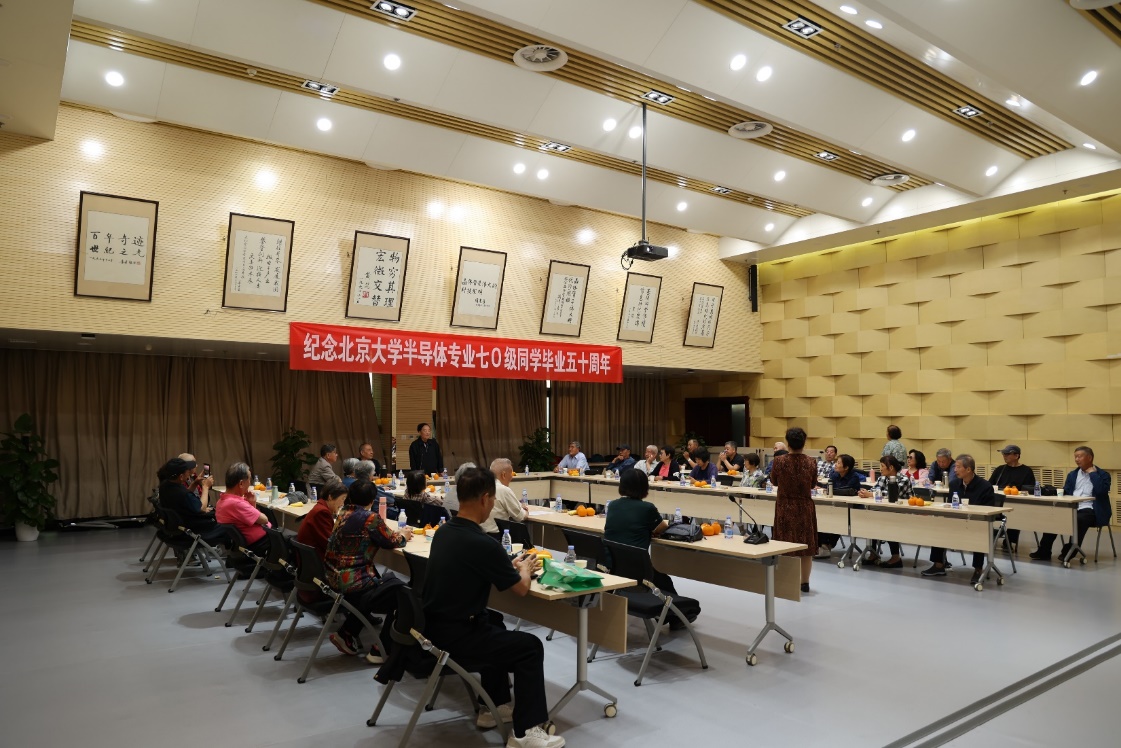 5月26日,blh漫画 半导体专业1970级同学毕业50周年返校活动在blh漫画 103报告厅顺利举行。王阳元院士在线上参与交流,blh漫画 电子仪器厂原厂长童宣海同志,时任教师代表谭国英、李映雪、甘学温、张天义、陈娓兮、章蓓等老一辈教师也应邀参加。blh漫画 副院长王玮、鲁文高出席活动。