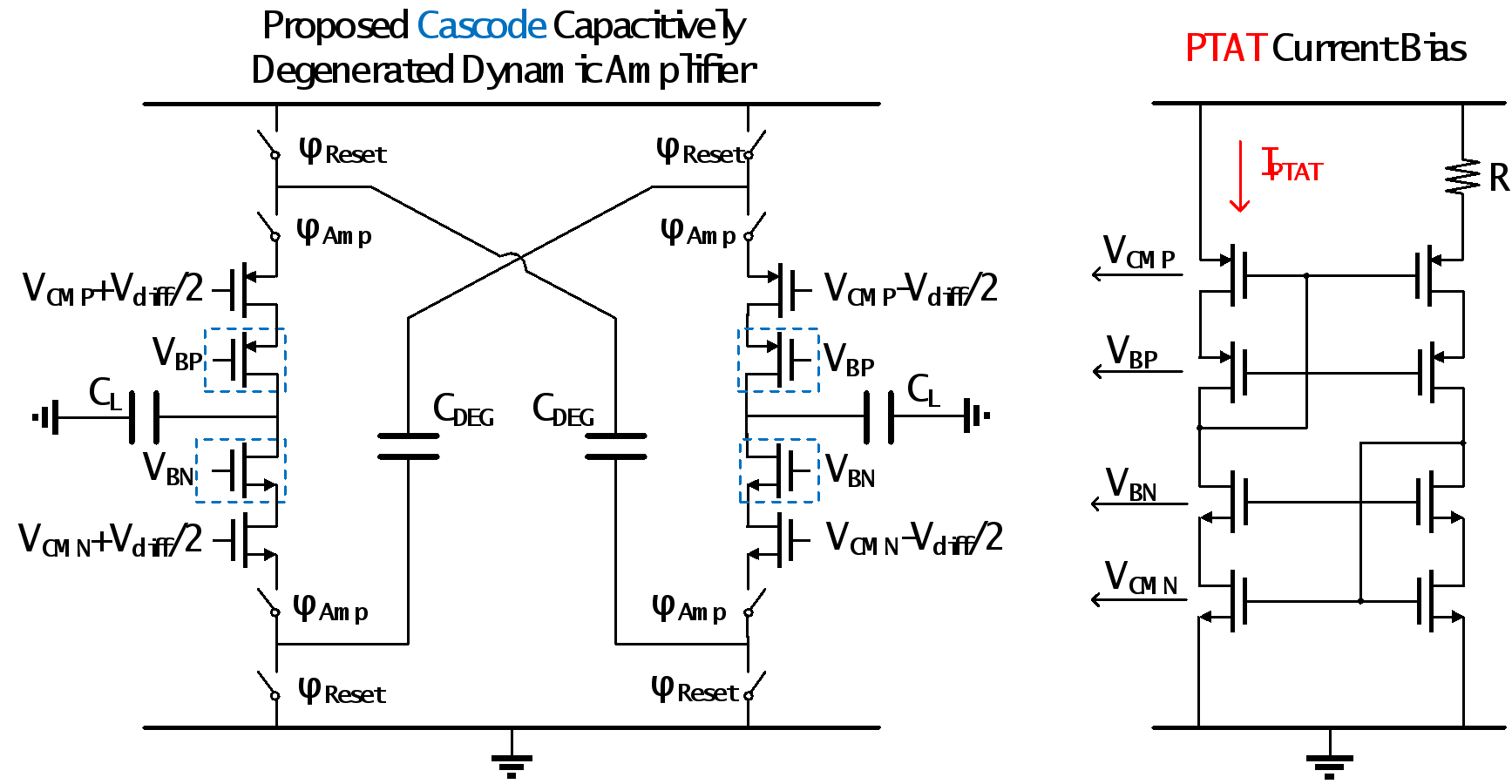 针对以上问题,blh漫画 黄如院士-叶乐教授团队,首次提出了共源共栅的容性源极负反馈的动态放大器和最高位提前转换技术:其中共源共栅的容性源极负反馈的动态放大器改良了之前的技术,具有高线性度和高增益的特点,同时采用了温度补偿的电流偏置方案提升了PVT涨落下的性能鲁棒性。而另一方面,最高位提前转换技术在余量放大的过程中进行了第二级最高位的转换,这不仅进一步提高了动态放大器的输出摆幅,同时让第二级的最高位切换更快稳定。值得一提的是,这个技术获得的这些好处并不需要引入额外的硬件开销。利用以上技术,本工作提出了一个高能效、高增益、高线性度、高输出摆幅且PVT鲁棒的动态放大器,并实现了一个高能效的流水线-逐次逼近型模数转换器芯片。
