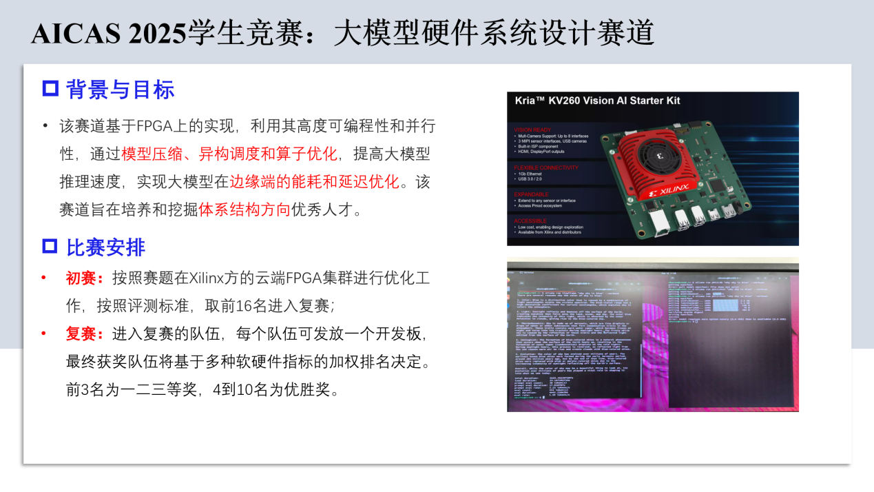 IEEE人工智能电路与系统国际会议(AICAS)是人工智能与集成电路交叉领域的全球顶级学术会议,由IEEE电路与系统协会(CASS)主办。自2023年起,AICAS Grand Challenge赛事由上海交通大学、南京大学等高校联合发起,聚焦大语言模型(LLM)的软硬件协同优化、边缘智能等前沿方向,旨在推动AI技术在工业界的落地应用。2025年赛事由平头哥半导体、Arm、AMD等企业提供算力支持,设立三大赛道,覆盖大模型系统优化、硬件设计及AI驱动EDA等热点领域。