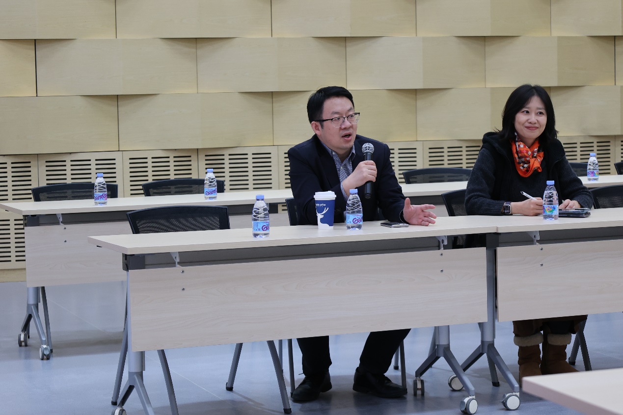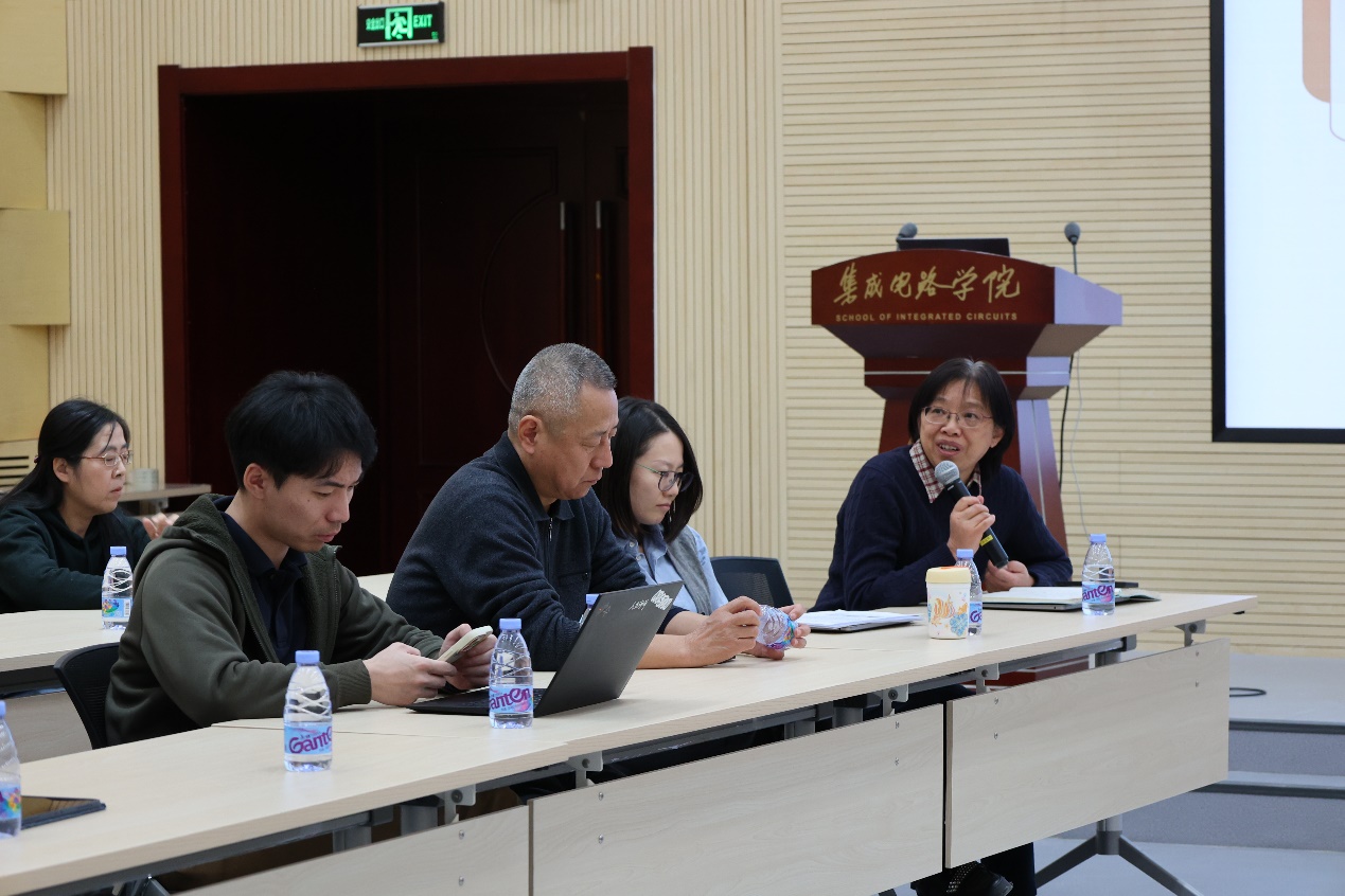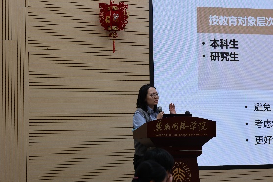 青年教师基本功大赛课程思政奖获得者郑雨晴老师、马宇飞老师分享了他们的课程思政教育心得。郑雨晴老师就思政教育是什么、如何进行分层次的思政教育以及面对不同的学生群体如何进行思政教育等内容进行了分享。马宇飞老师从人工智能芯片课程出发,分享了人工智能芯片如何与思政教育相结合的看法。青年教室贺明老师随后也分享了自己在授课过程中对思政教育的一些思考。