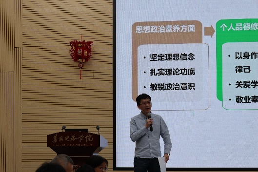 学院党委书记王源老师从自身经历出发,分享了课程思政教育对学生的正向影响和重要意义。他鼓励年轻老师可以从自身的背景出发,通过一些不同的形式进行思政教育。