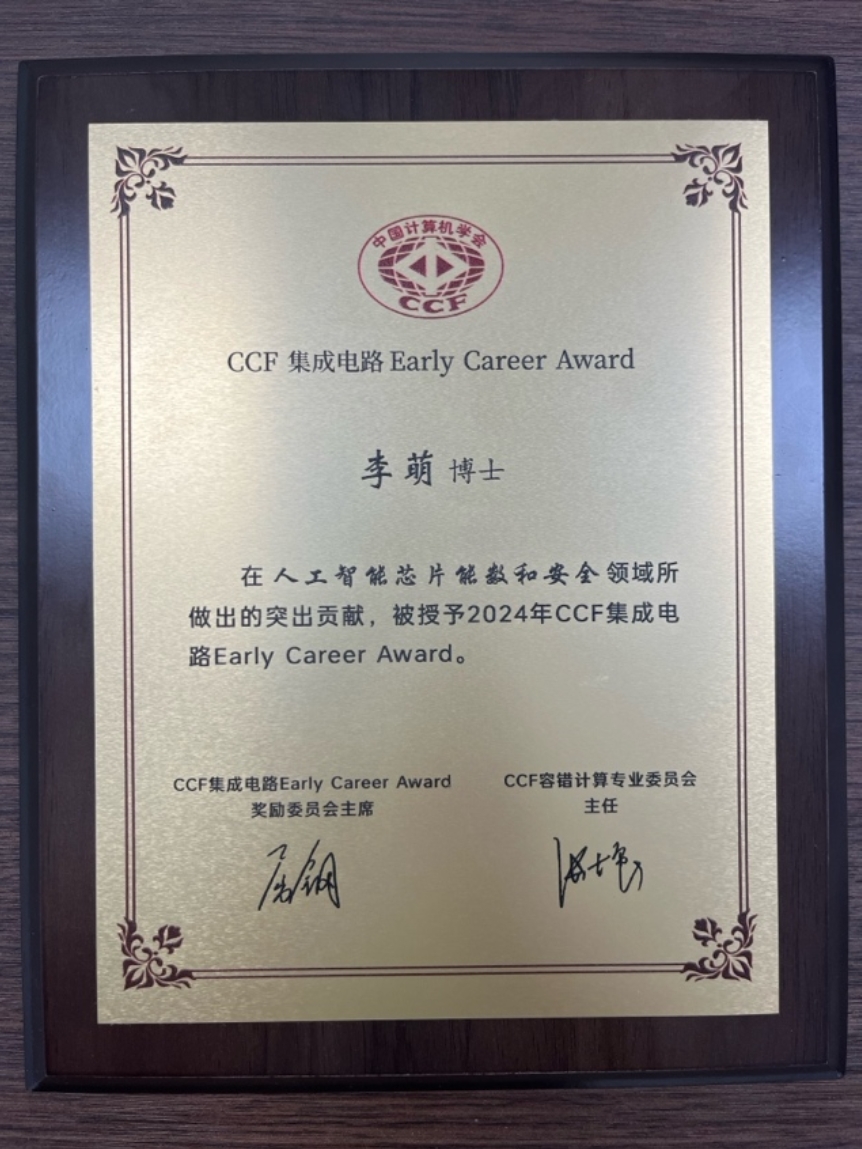 近日,中国计算机学会(CCF)将2024年度“CCF集成电路Early Career Award”授予blh漫画 助理教授李萌,并于7月20日在第二届中国计算机学会芯片大会CCF Chip 2024学术会议上颁发。