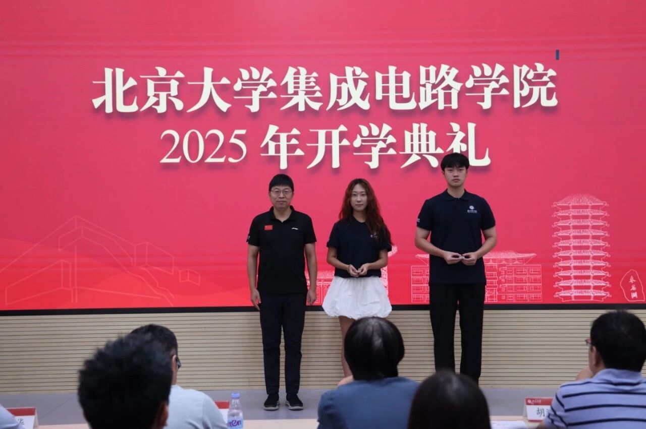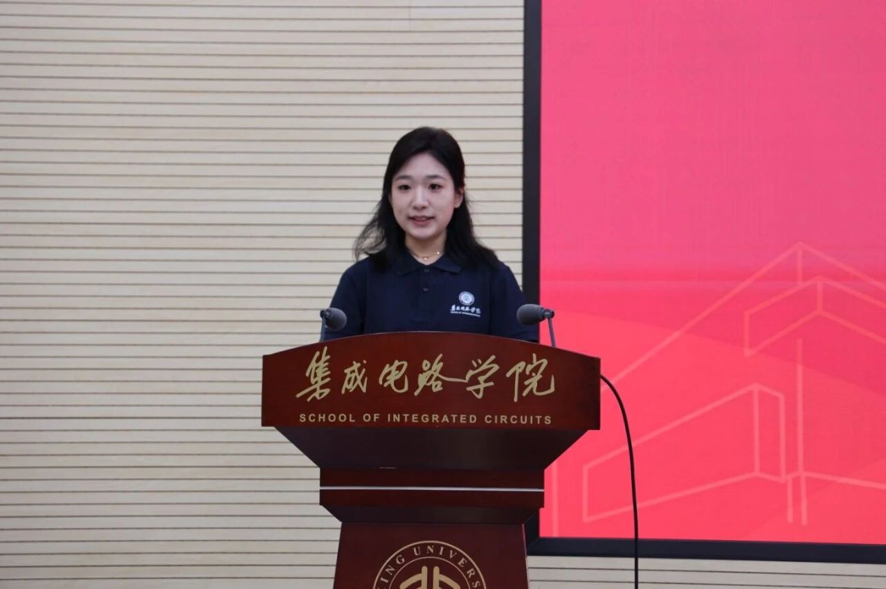 随后,硕士新生代表李子越同学讲述了自己从本科起步、逐步走入微电子领域并实现“北大梦”的经历。她分享了面对挫折时重拾信念、坚持热爱的成长过程,倡议同学们珍惜学习机会,将个人发展融入国家“芯”使命,为“芯”读书、为“芯”奉献、以“芯”报国,在科研道路上不断前行、勇担时代责任。