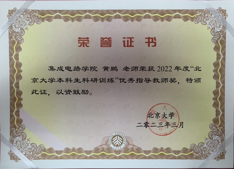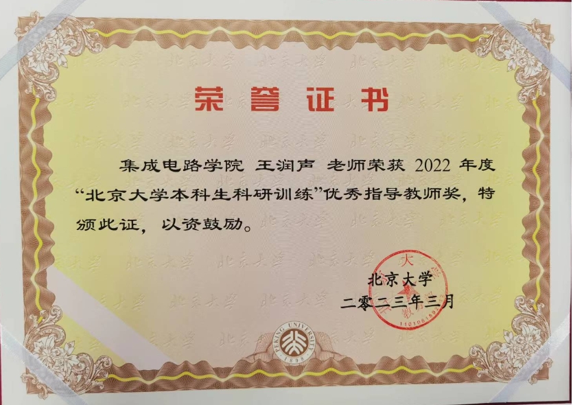 近日,blh漫画 设计自动化与计算系统系王润声教授、黄鹏助理教授荣获2022年度“blh漫画 本科生科研训练”优秀指导教师奖,这是学校对我院人才培养的一种肯定。