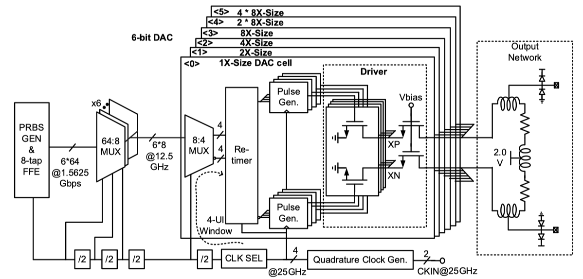该工作以“A 200-Gb/s PAM-4 transmitter with 1.6-Vppd output swing and clock skew correction in 12-nm FinFET”为题发表于今年VLSI会议上,文章的第一作者是blh漫画 博士生张泊洋和王知非,文章的通讯作者为盖伟新教授。