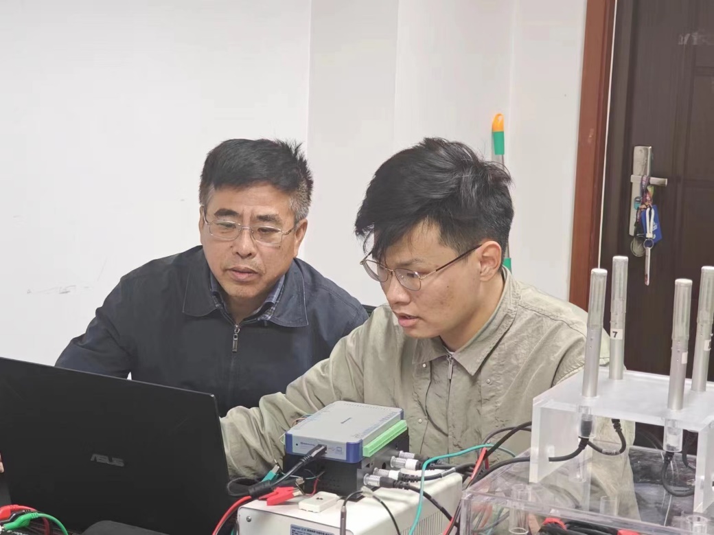 高成臣(左)指导学生工作