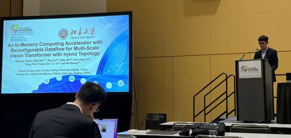 近年来,具有多头注意力(MHA)机制的 Transformer 模型在计算机视觉任务中展现出了良好的表现。 然而,视觉Transformer(ViT) 缺乏归纳偏置,导致大量的计算和存储需求,使其难以在资源受限的边缘设备上部署。为此,涌现出了一批具有混合网络结构的多尺度ViT模型,以充分结合Transformer 与卷积神经网络(CNN)两者的优势。 然而,现有的领域专用架构侧重于单独对卷积或 MHA 进行优化,且无法支持多尺度结构下灵活多变的层尺寸,缺乏灵活性与通用性。针对以上问题,黄如院士-叶乐教授、马宇飞研究员团队提出了一种存算一体(IMC)的AI加速器,通过引入流水线重排,有效加速具有混合卷积-MHA拓扑的多尺度ViT模型。 SRAM 数字 IMC 宏被用于缓解内存访问瓶颈,同时避免模拟非理想性。 此外,该工作中研究了可重构处理引擎和互连,以实现不同尺度下卷积和 MHA 的自适应映射。实验结果表明,相比基准设计,在典型的ViT工作负载下,所提出的架构可降低44.1%~55.9%的能量-延迟积(Energy-Delay-Product,EDP)。该工作以《An In-Memory Computing Accelerator with ReconfigurableDataflow for Multi-Scale Vision Transformerwith Hybrid Topology》为题发表(博士生陈至远为第一作者,人工智能研究院马宇飞研究员为通讯作者)。