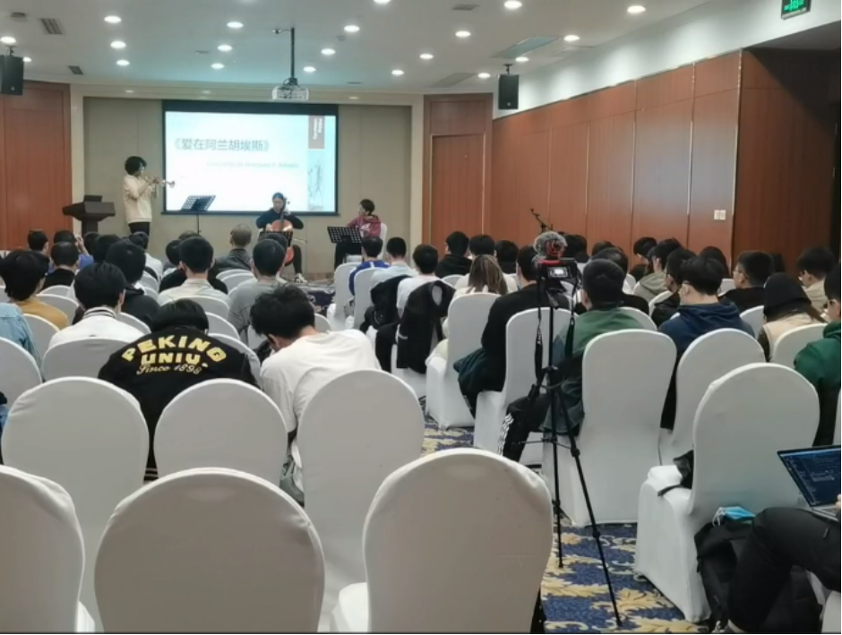 联欢会上,北大各个文艺社团及本系同学贡献了精彩的演出,有北大曲艺协会的同学带来的相声表演、北大同学组建的白板擦乐队带来的器乐演奏、趣听脱口秀协会组合展示的漫才节目、学生提琴社的小提琴独奏及DACS系学生的吉他弹唱。优美舒缓的器乐表演令观众沉醉其中,金句频出的相声漫才使大家捧腹大笑。诸多精彩节目引得台下观众掌声连连、笑声不断。