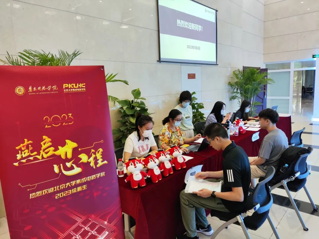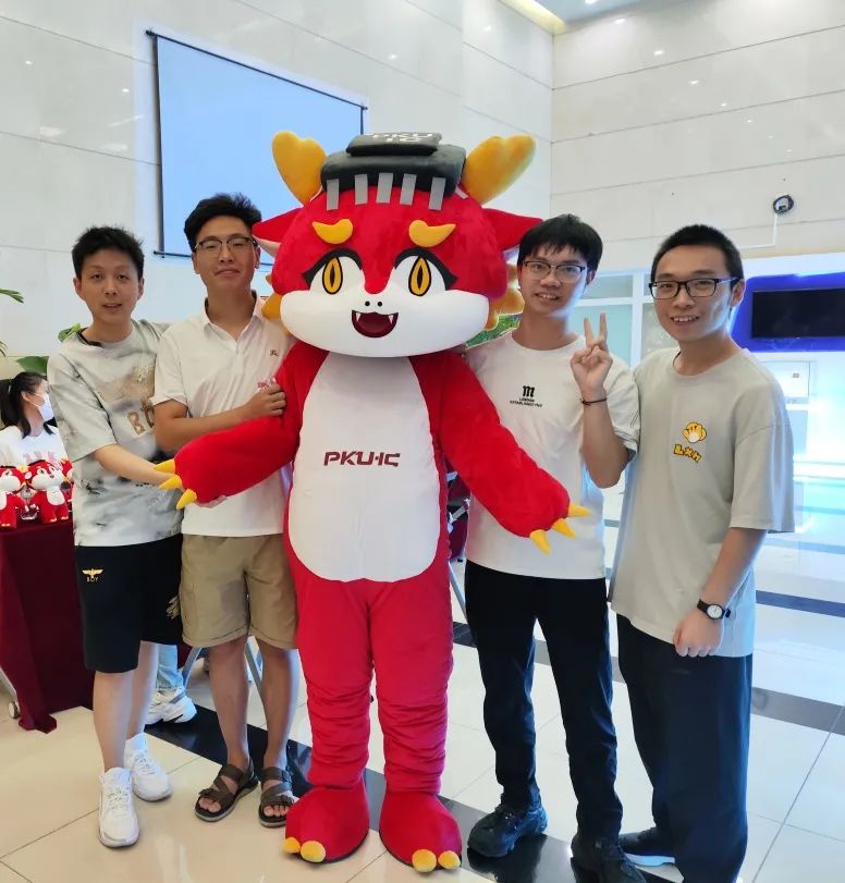 同学们怀着初入燕园的好奇与激动之情,手持学院标志,和吉祥物“莫斯电龙”开心合影,留下了在燕园的记忆。