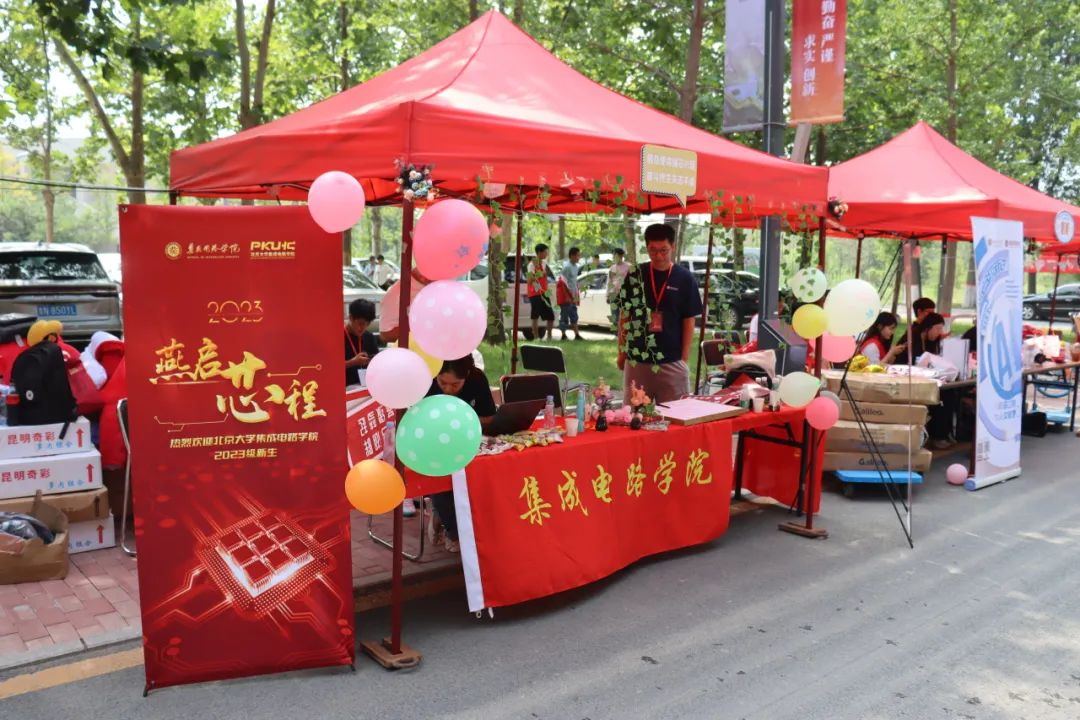 统计新生信息、设计迎新展板、准备具有学院特色的“迎新大礼包”……点点滴滴,都凝聚着老师和学长学姐们的真挚欢迎。报到日当天,迎新工作人员和志愿者们早早起床,披着朝霞,将物资转运到迎新站点。悬挂院旗,布置合影板,调试设备,摆放吉祥物……志愿者们有条不紊地开展着准备 工作,只为让同学们有更为温馨的报到体验。