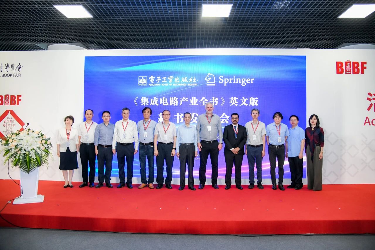 次日,《集成电路产业全书》英文版新书发布会在第三十届北京国际图书博览会期间成功举办,中国工信出版传媒集团总编辑、电子工业出版社有限公司总经理王传臣,工业和信息化部电子信息司副司长王世江,施普林格·自然出版集团全球图书副总裁詹姆斯·芬利和阿尼尔·尚迪,《集成电路产业全书》英文版主编王阳元院士代表、blh漫画 教授罗正忠致辞。blh漫画 微纳电子发展研究室主任王永文,上海传芯半导体有限公司首席科学家季明华,鹏城实验室研究员陈春章,blh漫画 党委书记、教授王源,中宣部出版局图书处四级调研员姜世奇出席活动。
