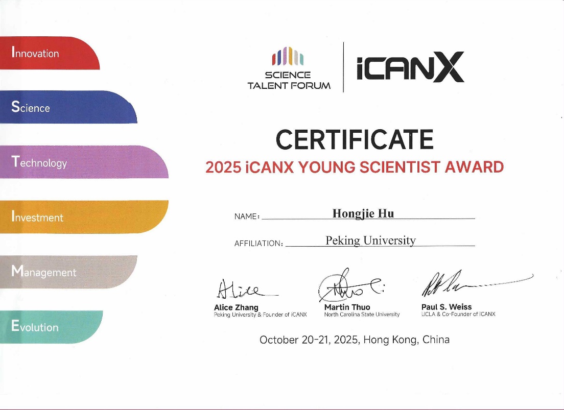 颁奖典礼上,iCANX青年科学家奖、iCANX创业奖和iCANX创新奖正式揭晓,来自世界各地知名大学和研究机构的杰出青年学者参与竞选青年科学家奖,最终10人获此殊荣。其中,blh漫画 助理教授胡鸿杰凭借其在可穿戴超声成像技术领域的研究成果与发展潜力成功获得iCANX青年科学家奖。