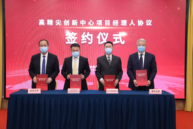 与北京市教委、北京科技创新投资管理有限公司签约。