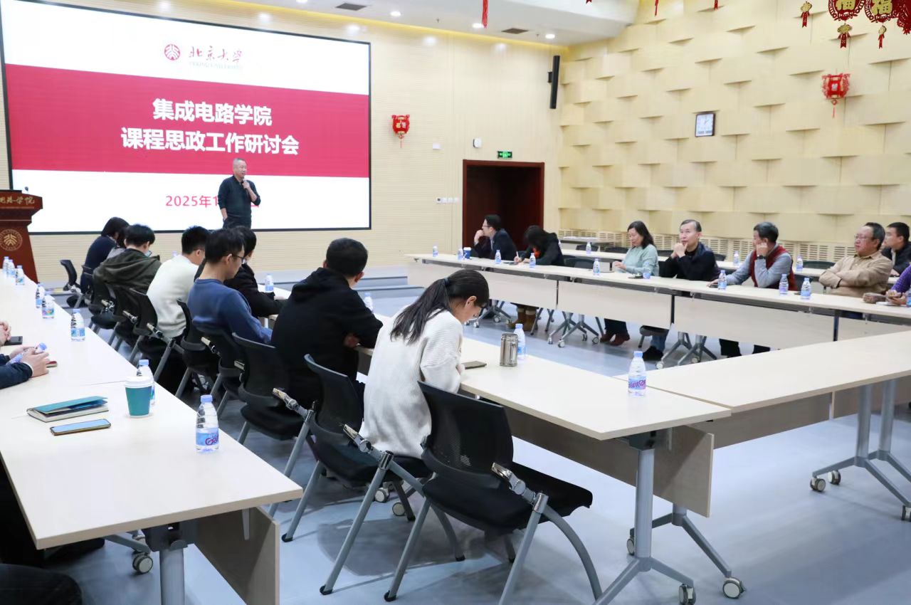 课程思政工作研讨会在微纳电子大厦103报告厅顺利召开。本次会议由学院教学副院长刘晓彦教授主持,学院党委书记王源教授、党委副书记张舒老师、教学经验丰富的张兴老师和张大成老师以及30余位任课教师出席会议,就学院课程思政经验、授课心得、课程建设等进行了深入交流和讨论。